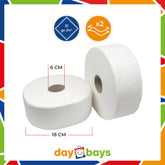 DayBays Jumbo Toilettenpapier Maxi 2-lagig 492 Blatt Zellstoff Extra Weich Weiß