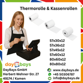 DayBays Thermorolle 57x60x12 mm 50 meter pro Rolle Kassenrollen aus Papier